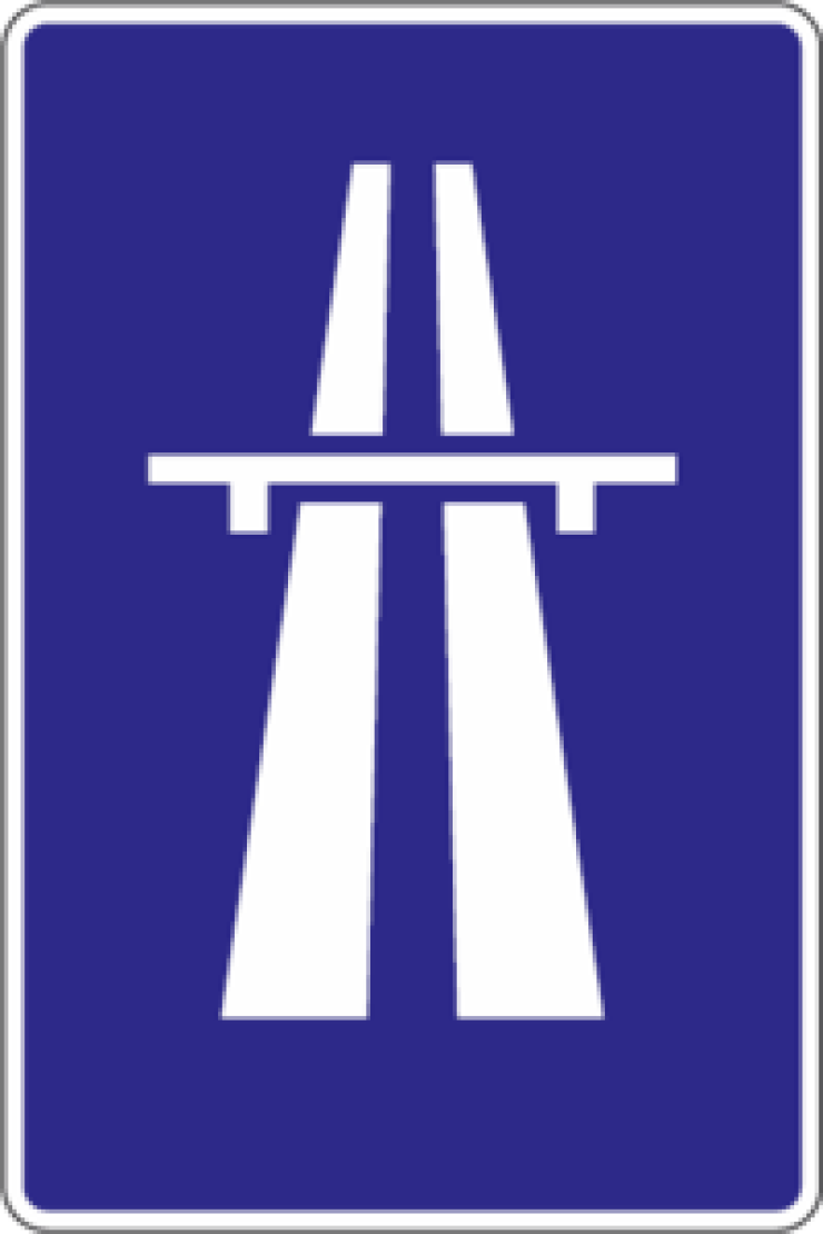 Avgiftsfri motorväg (A) skyltas så här
