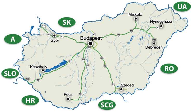 Det stjärnformade motorvägsnätet utgår från Budapest
