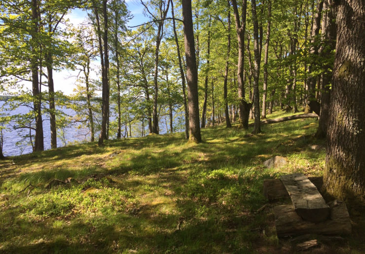 Ekskogen runt sjön är trevlig att promenera i med eller utan hund.