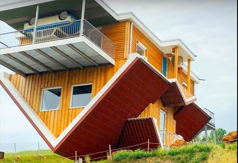 Mer avancerat är dock det uppochnedvända huset i Tyskland, Toppels Haus i Wertheim. Tyskarna har vänt hela huset upp och ned och inredningen är som sig bör placerad på golvet som är uppåt och det gäller även bilen på parkeringen. Kaffet inmundigas förstås på den bredvidliggande baren. Kolla in videon!