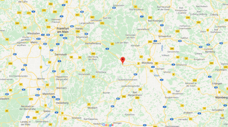 Här hittar du det uppochner-vända huset. GPS: N49°46'18", E9°35'13"