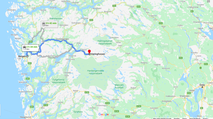 GPS: N60°25'36", E7°15'05" vilket är knappt tjugo mil rakt öster om Bergen.