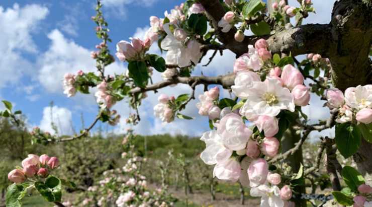 Äppelodlingarna på Österlen är lika karaktäristiska för trakten som lavendelfälten är för Provence. Det kustnära klimatet på Österlen är optimalt för äppelodling med svalare vårar och varmare höstar vilket i sin tur ger äpplena en långsammare mognad och mer smak. Även i år kom vårvärmen tidigt och äppelträden började sin blomning redan i slutet av april mot det mer vanliga i mitten av maj.