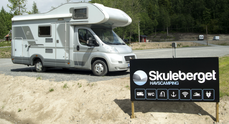 Ställplats eller camping, det är frågan. Här står 46 ekipage på Skuleberget Havscamping över natten i mäktig natur.