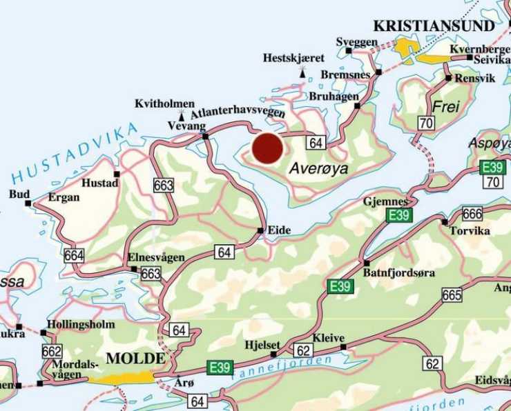 Vi befinner oss på Vestlandets yttersta, vindpinade kobbar mot havet, men de 120 forna bofasta här vid ett av Norges bästa fiskevatten hade knappast kunnat tänka sig att vi skulle kunna ta bilen hit. Men möjligheten kommer med en saftig prislapp eftersom man från Kristiansund först måste köra genom den avgiftsdyra Atlanterhavstunneln, även den spektakulär, som går djupt under havsviken. Men till skillnad mot Geirangers serpentinvägar är det en annan skönhet och det är givet att variationen är stor då det finns nästan 3000 mil fastlandskust mot Sveriges 1150. Och det känns mer naturligt att åka uppe på land än under, inte minst för att kunna njuta av områdets skönhet, åtminstone på sommaren när trutar och tärnor svävar i den salta havsluften. Känner du dig ändå inte nöjd med utsikten från vägen gör du en avstickare till Averøy där du kan titta på den runt år 1300 byggda Kvernes Stavkyrka som har en magnifik utsikt över Kvernesfjord och Freifjord eller så besöker du öns erkänt natursköna västra sida som har en magnifik kustlinje längs med Hustadvika.