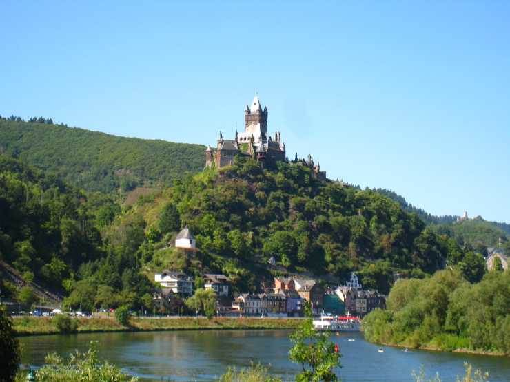 Vi är halvvägs mellan Cochem och Koblenz när vägen tar mig upp i bergen och jag tycker jag kör i evigheter. Sträckan är inte lång men eftersom alla avstånd är korta när man färdas efter Mosel känns det som jag kanske kört fel. Efter en stund kommer jag till parkeringen där husbilen får plats utan problem och jag får en bunt med informationsfoldrar så att jag vet vad jag kommer att få se. Att det är Tysklands i särklass mest kända slott för knektar och historia känns som självklart.