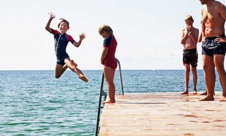 När solen sakta sänker sig mot havet samlas folk på bryggan. Orkestern stämmer upp och stämningen är på topp. Är det så här du älskar campinglivets gemenskap skall du bege dig hit för den här beskrivs ofta som Sveriges svängigaste camping.
