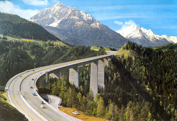 Det var på 1960-talet som den bågformade bron byggdes och det är bron som gjort hela motorvägen möjlig. Den 657 meter långa och 190 meter höga bron invigdes 1963 och var i 40 år den högsta bron i Europa räknat i höjd från marken. När Millaubron invigdes 2004 fick den se sig slagen och petades ner till en andraplats. Men framför allt är bron en symbol för det sammanfogade vägnätet i Europa och ger nordeuropeer tillgång till sydeuropas sol och värme även när snön stänger alppassen.