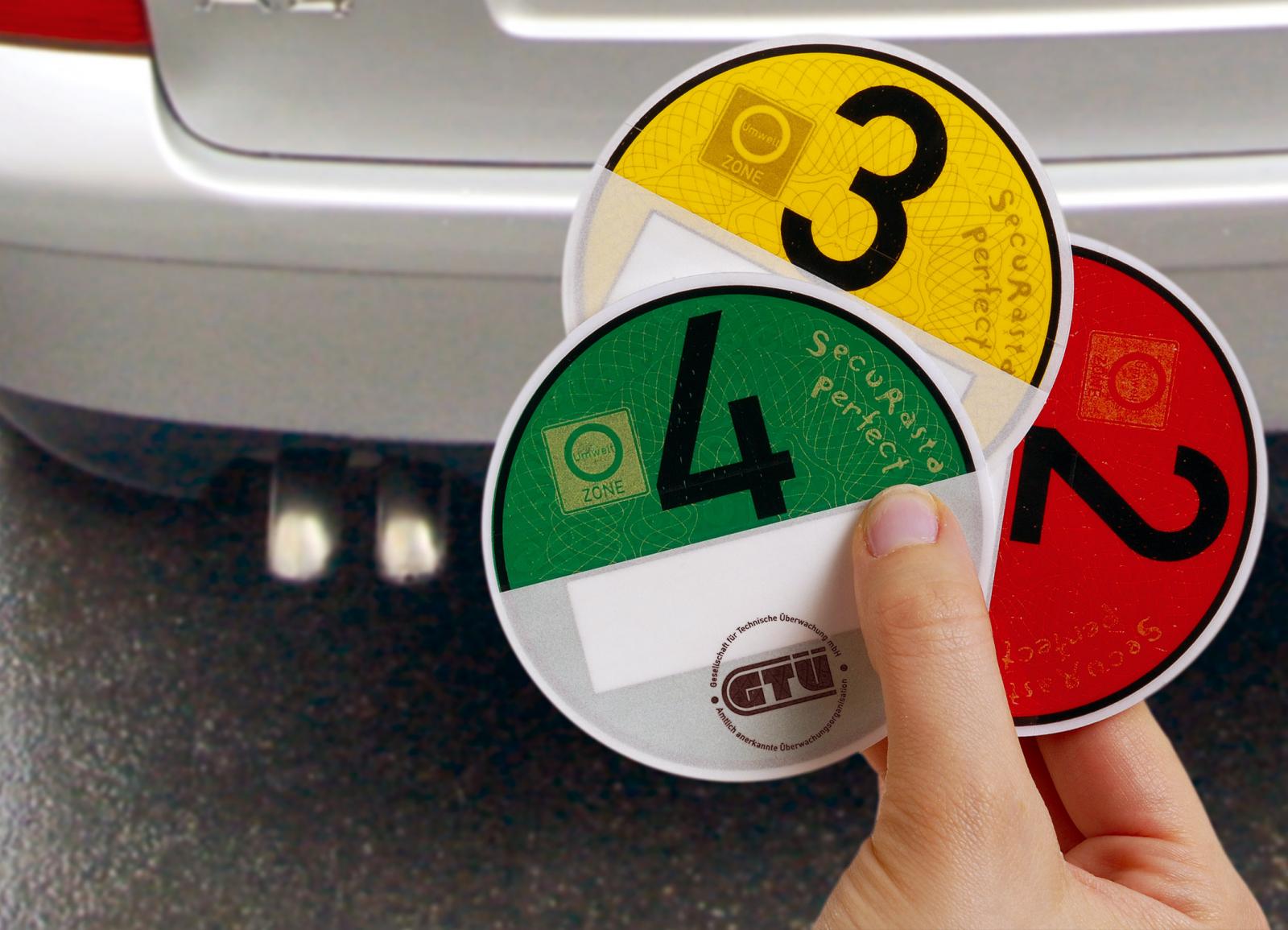 För att få köra personbilar, lastbilar och bussar i flera tyska städer som infört miljözoner, ”Umweltzonen”, krävs sedan år 2008 en dekal som sätts fast på vindrutan. Dekalen heter ”Feinstaubplakette” och visar att bilens partikelutsläpp understiger en viss nivå.