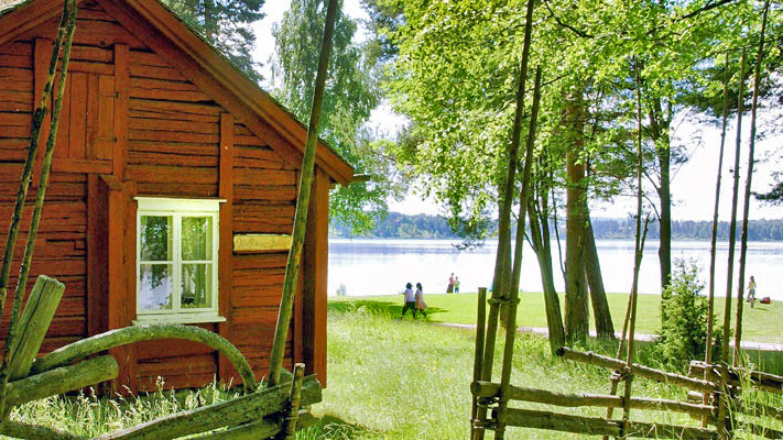 Det blå vattnet ligger som en spegel nedanför oss medan fåglarna kvittrar och insekterna surrar. Det faluröda caféet kontrasterar mot grönskan i bakgrunden och får oss att känna att vi flyttats tillbaka till en svunnen epok medan vi njuter av utsikten över Kyrkviken över en god kopp kaffe och en härligt färsk bulle. Vi är på besök på Arvikas eget Skansen, ett friluftsmuseum med ett urval av olika typer av hus från Arvikas omgivningar.
