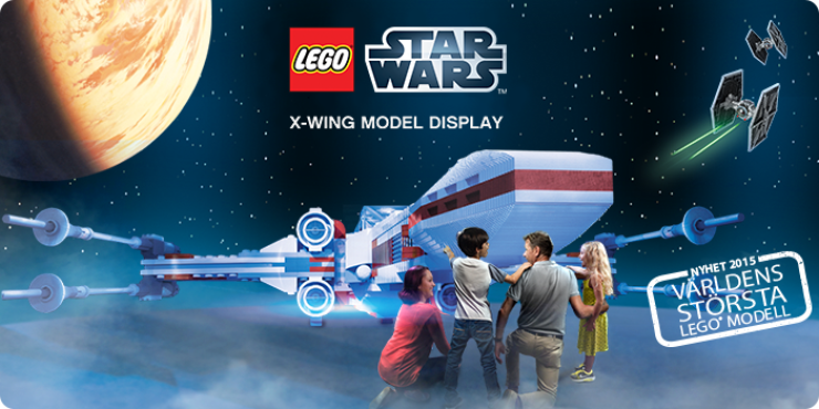 Den här säsongen landar världens största modell av LEGO® klossar på LEGOLAND®. Luke Skywalkers LEGO X-wing Starfighter är byggd av 5 335 200 LEGO klotsar, är 3 meter hög, har en vingbredd på 13 meter och väger mer än 20 ton! Det är exakt 42 gånger större än den modell som finns till salu. Totalt har 13 modellbyggare hjälpts åt för att bygga hela farkosten.