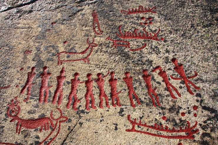 När hällristningarna skapades på Tanums hällar, år 1800-500 f. Kr., låg dessa i vattenbrynet men i dag finns de omkring 25-30 meter ovanför havsytan. Man har hittills hittat omkring 1 500 hällristningar i norra Bohuslän uppdelade i 350 grupper och nya upptäcks ständigt. En stor och ovanligt variationsrik del av dem finns på de släta bergshällarna i Tanum där arkeologerna har funnit ett tjugotal typer av figurer och motiv, till exempel skålgropar, skepp, slädar, djur, människor, handflator, fotsulor, träd och vapen. Bilderna beskriver bronsåldersmänniskornas sociala liv, deras andliga upplevelser, trosföreställningar och riter. De tolkas som tidig symbolisk bildkonst med motiv och placering som medvetet planerats av sina upphovsmän.