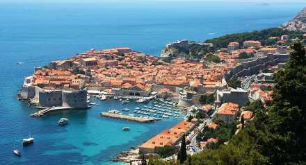 I takt med att vägen klättrar högre tilltar den speciella sydeuropeiska grönskan. Men klättringen uppåt ersätts av en bedårande utsikt över staden när vägen vänder nedåt mitt bland bergssidans vinstockar. Staden Korcula uppenbarar sig med sitt fantastiska läge på halvön som sticker ut i Adriatiska havet och ser ut att sträva mot fastlandsbergen. Den välbevarade staden syns som bäst så här från ovan där virrvarret i en medeltida stad visar den totala avsaknaden av stadsplan. Trots detta är stadens gränder så klurigt ordnade att invånarna får en lagom dos med vind och sol. De som skapat denna charm, som vi inte är bortskämda med i Sverige, var de styrande i Venedig som visste hur att göra under de 800 år de behärskade staden.