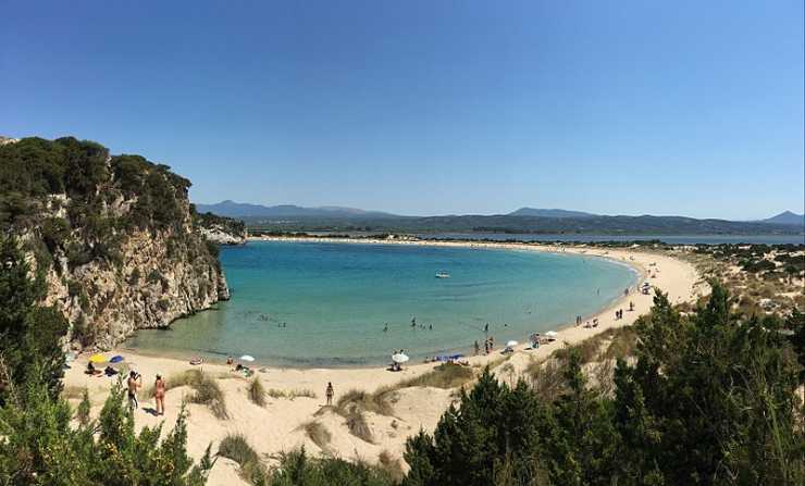 När jag närmar mig Pylos norrifrån och svänger av mot Voidokilias, en buktformad strand som rankas som en av världens vackraste, tar naturens skönhet ytterligare ett grepp om mig. Jag kör fram till parkeringen och fortsätter till fots upp till borgen och ser bukten i all sin skönhet ovanifrån. Bukten är fyllt av alldeles kristallklart vatten som skiftar i alla tänkbara färgnyanser från turkos till de djupblå toner som visar på ett större vattendjup. Jag är helt övertygad om att detta är platsen där grekerna fann formen för deras bokstav omega, Ω.