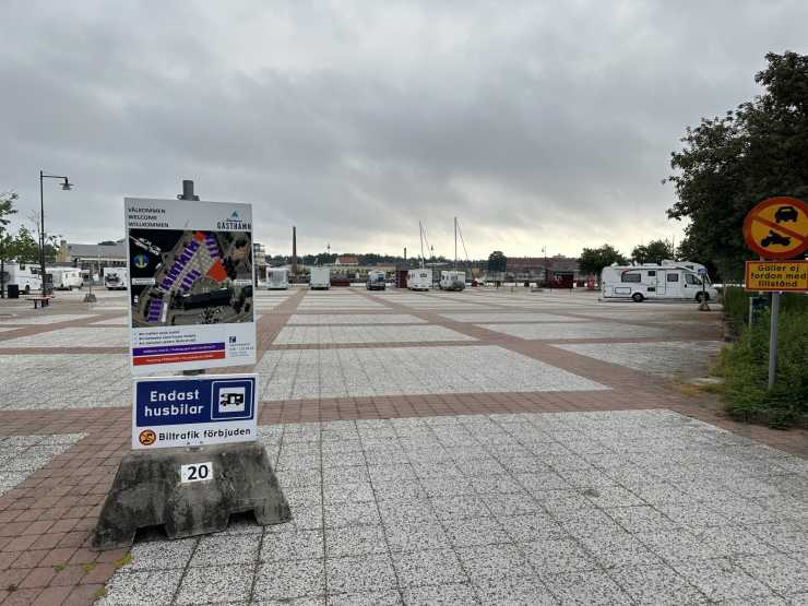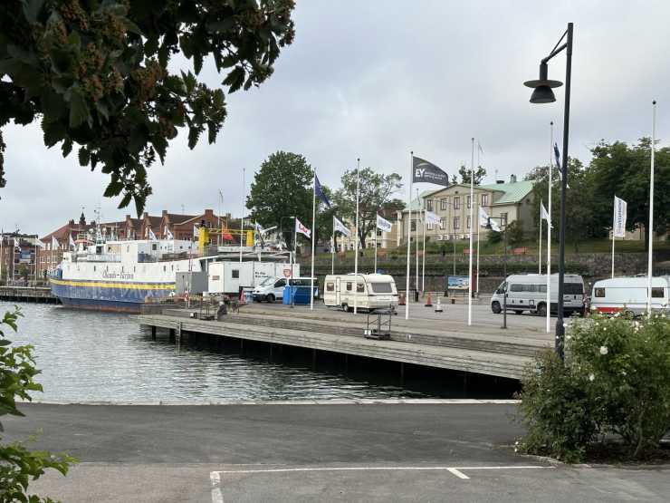 Oskarshamns gästhamn har ställplatser, precis intill Ölandsfärjan.