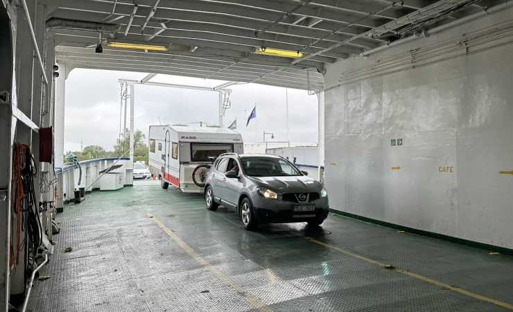 Husbilar och husvagnar är välkomna på färjan. Men du måste sms:a en förfrågan för att boka plats.