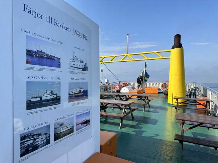 Det går att ta färja med färjan från Oskarshamn till Byxelkrok. Men av någon anledning blir det inte av att vi kollar den i samband med att resten av resan bokas. Färjan ser liten ut. Tar de verkligen husbilar och husvagnar?