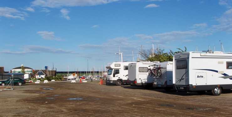 Ställplatsen har ett fantastiskt fint läge i hamnen. Miljön är trevlig och den pittoreska staden ligger bara ett stenkast bort, med vacker bebyggelse och ett bra utbud av butiker, restauranger och kaféer.