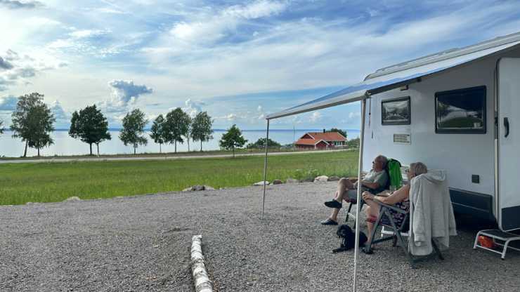Mittemellan en av Sveriges vackraste turistvägar och E4 ligger en ny ställplats – med utsikt över Vättern. Läget är nära vägen, men ändå lugnt eftersom gamla Tranåsvägen inte är så trafikerad.