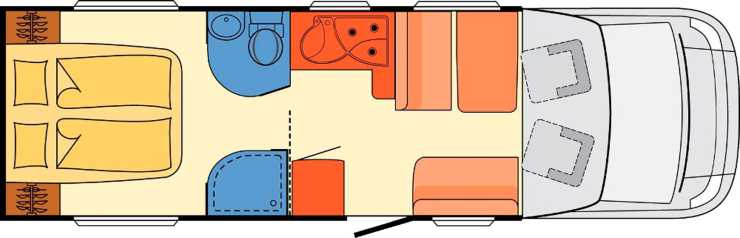I bilens bakre region finns ett tekniskt dubbelgolv vilket ger en ganska hög tröskel att se upp med. Det finns ventilerade plåtar över den konvektor som är placerad i trappsteget vilket gör det enklare att upptäcka faran. Det finns även en skjutdörr precis här vilket privatiserar sovrummet.