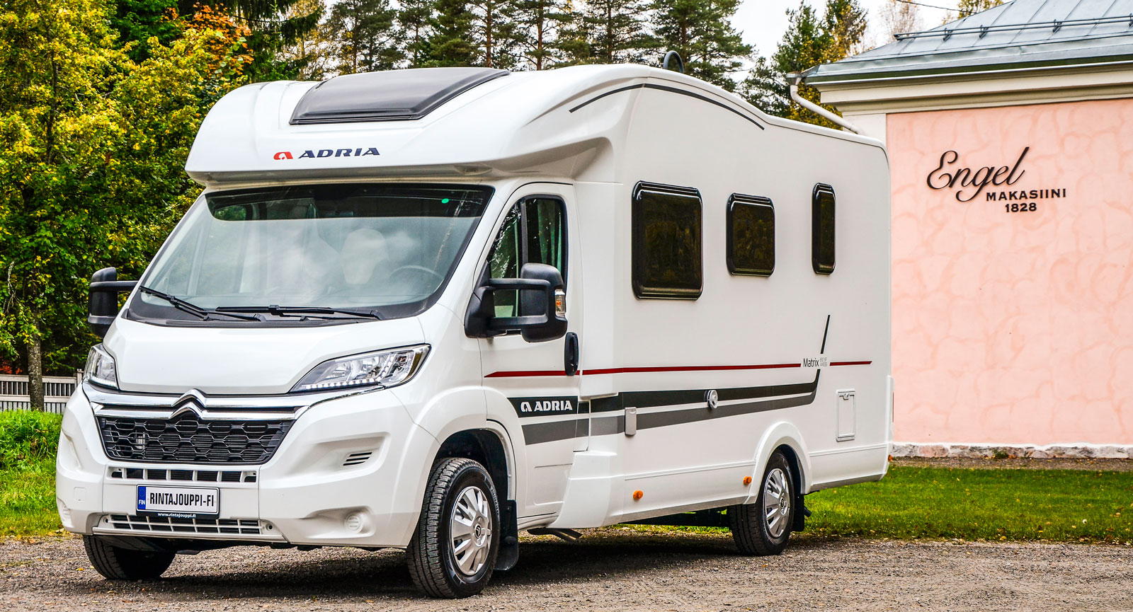 Adria Matrix axess 650 SF Citroën. Vid en snabb titt ser denna Adria ut som vilken husbil som helst. Men Citroën- emblemet i fronten avslöjar att något är annorlunda.