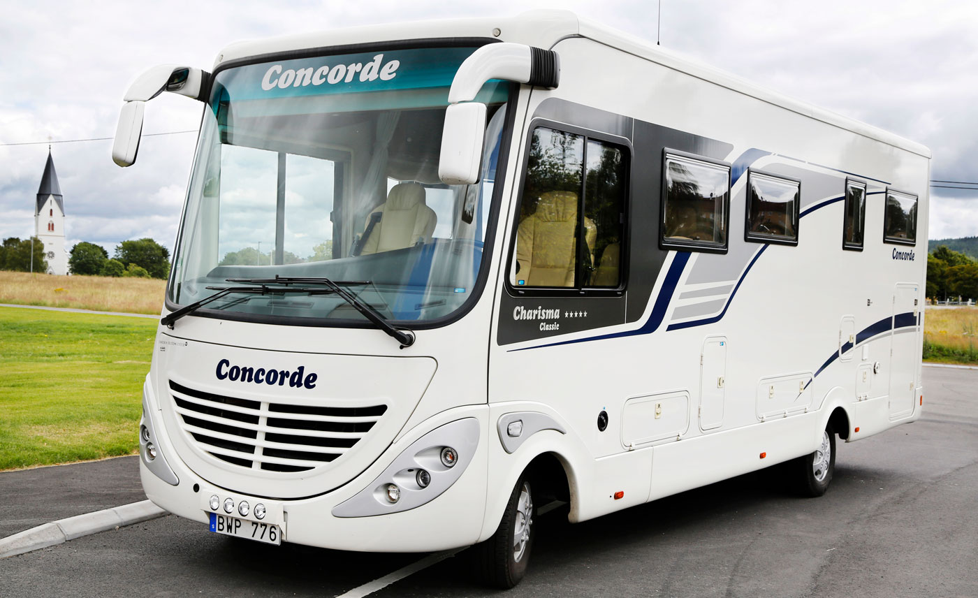 BEGAGNAT. Eftersom priset på en begagnad lyxliner är högt var vi nyfikna på hur de står sig efter ett antal mil. Vi hittade en Concorde Charisma hos Forsbergs Fritidscenter i Hyssna. Testbilen kan sägas vara välanvänd med sina 6 400 mil på mätaren.