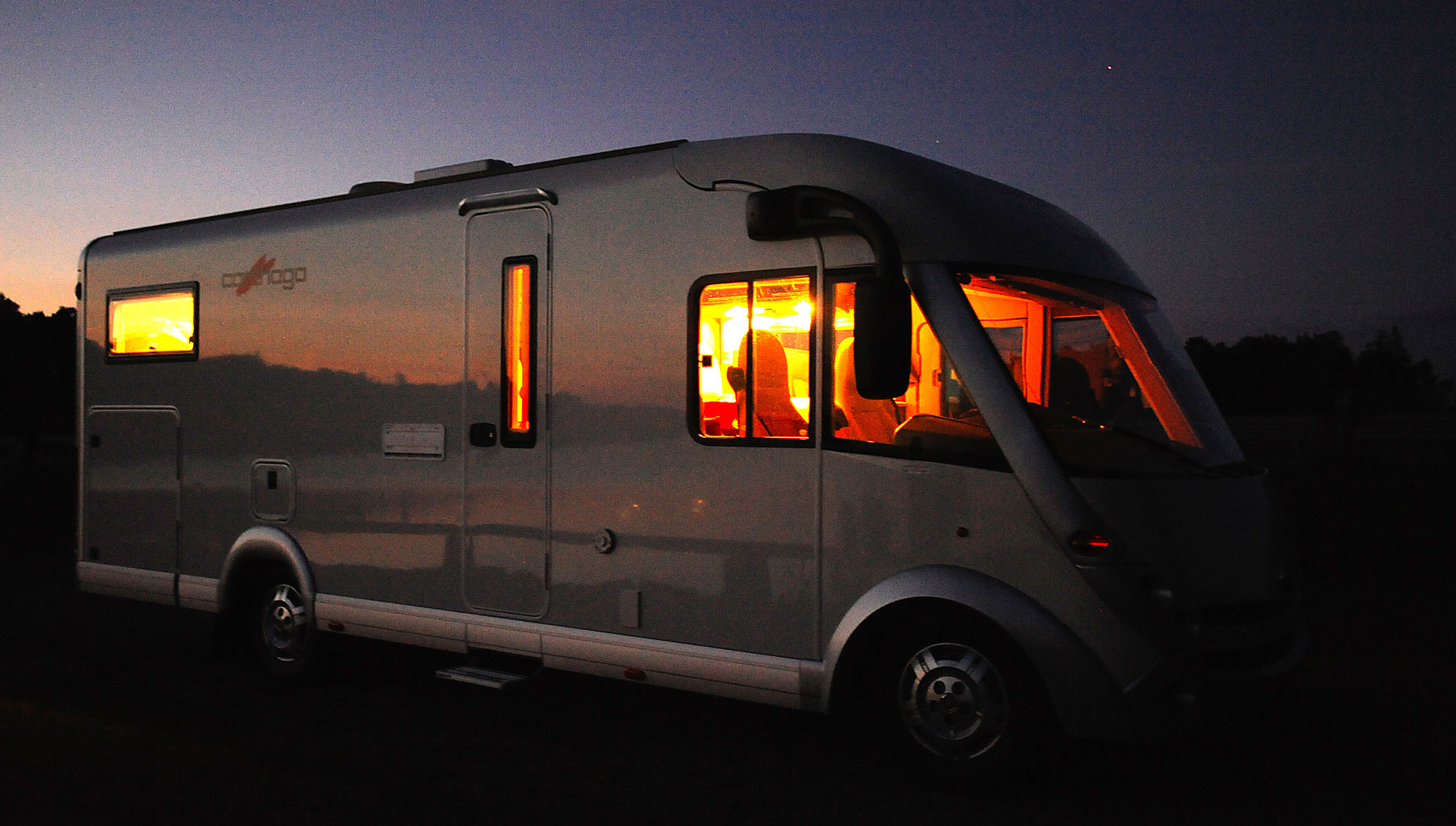 Av någon anledning tog hösten timeout just den kvällen vi provkörde nya Chic C-Line. Regniga, kalla och blåsiga höstnätter blev plötsligt till en ljum sensommarkväll med all den magi en sådan har att erbjuda. Fladdermössen dansade över sjön vars yta dolde den eviga kampen om födan. En kamp som man kunde ana sig till då ryggen på en större rovfisk skapade svallvågor i ytan eller då en liten fisk desperat hoppade upp över den lugna vattenspegeln. Just den här kvällen hittade vi resterna av en gammal bro i en svensk insjö. En liten vägstump som fått evigt liv då den leder upp på en bro som man bestämt sig för att bevara till eftervärlden. Den lilla vägstumpen blev ställplats för vår Carthago Chic C-Line; en helintegrerad husbil på ett Fiat Iveco/Al-Ko-chassi.