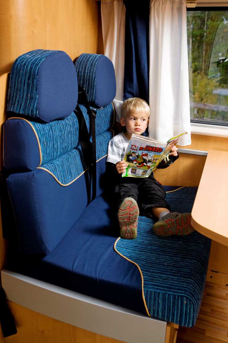 Ska alla sex som har sovplats med på resan måste bilen klassas med en tjänstevikt på 3 850 kg för att kunna godkännas med sex bältade platser. Den framåtvända soffan i sittgruppen har två trepunktsbälten och den bakvända har ett eller två midjebälten.