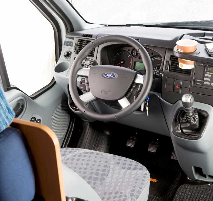 Föraren sitter väldigt långt fram i Ford-hytten. Så långt fram att vänsterfoten vilar på vänster hjulhus. Skönt eller inte. Det är något som du som eventuell köpare måste testa själv. Alla har vi olika långa ben.