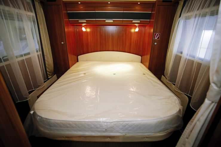 Sammanfattningsvis är detta husbilen för dig som gillar lyxig känsla och skinnklädsel. Sovrummet är härligt med en normalhög säng.