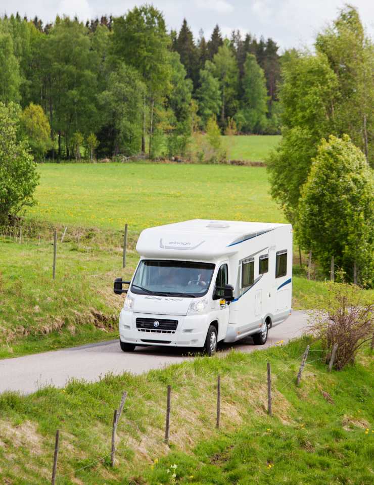 Vi rullar ut på en provtur i det småländska landskapet och den 130 hk starka dieseln på 2,3 liter svarar bra redan på låga varv. Under blandad körning på motorväg och i stadsmiljö känns husbilen lättkörd och smidig. I måttlig fart lägger vi märke till ett vindbrus som får oss att kontrollera om dörren i bodelen är ordentligt stängd. Det visar sig vara ventilationsgallren vid fotsteget alldeles innanför dörren som tog in vägljud. Det kan enligt uppgift avhjälpas med ”Scandi Pack” som bland annat innehåller golvvärme, matta i bodel, frostvakt för vattentank, en större Trumavärmare med mera för 27 700 kronor. Man kan även eftermontera innerskärmar som enligt uppgift också kan sänka ljudnivån.