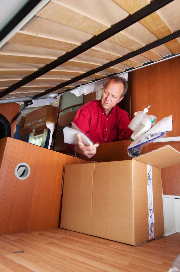 Kläder förvaras i en rymlig fullhöjdsgarderob, placerad mellan kyl-frysen och toaletten. Tvagning och toalettbesök sker i ett och samma utrymme som känns ljust och rymligt, mycket tack vare hörnhandfatet. Längst bak till vänster i den provkörda Baron-bilen finner vi en 194 centimeter lång och 130 centimeter bred fransk bädd. Denna går enkelt att lyfta upp och under finns Truma-anläggningen direkt vid fotändan. I uppfällt läge har man också en viss åtkomst till garaget/lastutrymmet. Det sistnämnda är kvadratiskt i formen och mäter 127 centimeter på bredden och längden, 58 centimeter på höjden och 91 centimeter på djupet.