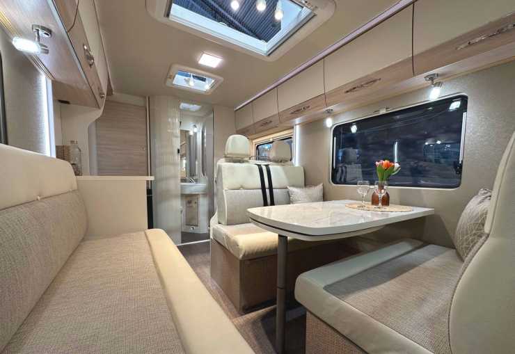 Med Activa One 630 LS har Eura Mobil dessutom lyckats skapa en alkovbil som känns riktigt lyxig inuti. Ljus och inbjudande med soffor som man vill slänga sig i – både för att umgås med vänner och på egen hand med paddan eller en bok.