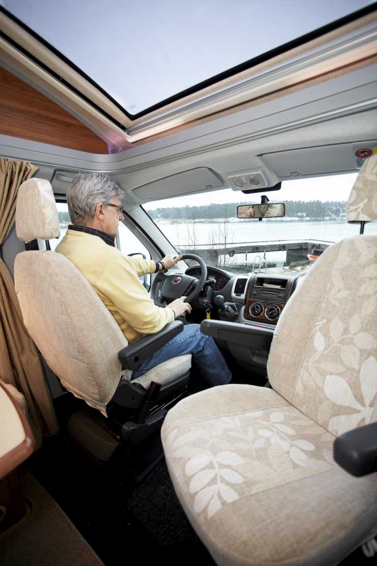Det stora takfönstret ger en väldigt ljus förarmiljö.
