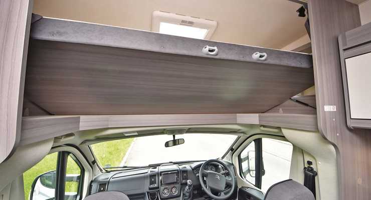 Den något klumpiga exteriören hos en alkovbil har dock flera obestridliga fördelar. Ingen annan typ av husbil har till exempel så mycket känsla av rymd på samma golvyta. Den mysiga sängen som finns där likt en koja ovanför förarhytten är alltid redo att användas utan att behöva hissas ner över en sittgrupp eller bygga om soffor och bord. Barnen som går och lägger sig tidigare har trygg utsikt över de vuxna i sittgruppen som alltså fortfarande kan användas.
