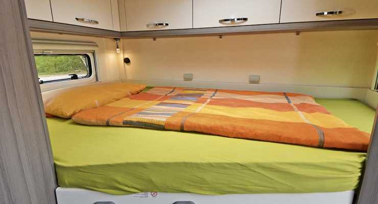 I alkoven är madrassen tunnare och takhöjden i alkoven är 58 cm vilket är helt okej för biltypen.