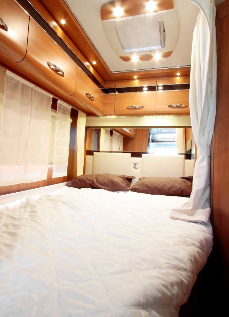 Spring-bilen är definitivt byggd för två personer eftersom den enda sovplatsen är en fransk säng i bakdelen av bilen. Soffgruppen kan vid behov även bäddas upp till en gästsäng. Det går även att utrusta bilen med ett popup-tak med plats för två sovande, en lösning som inte är så populär här i kalla nord.