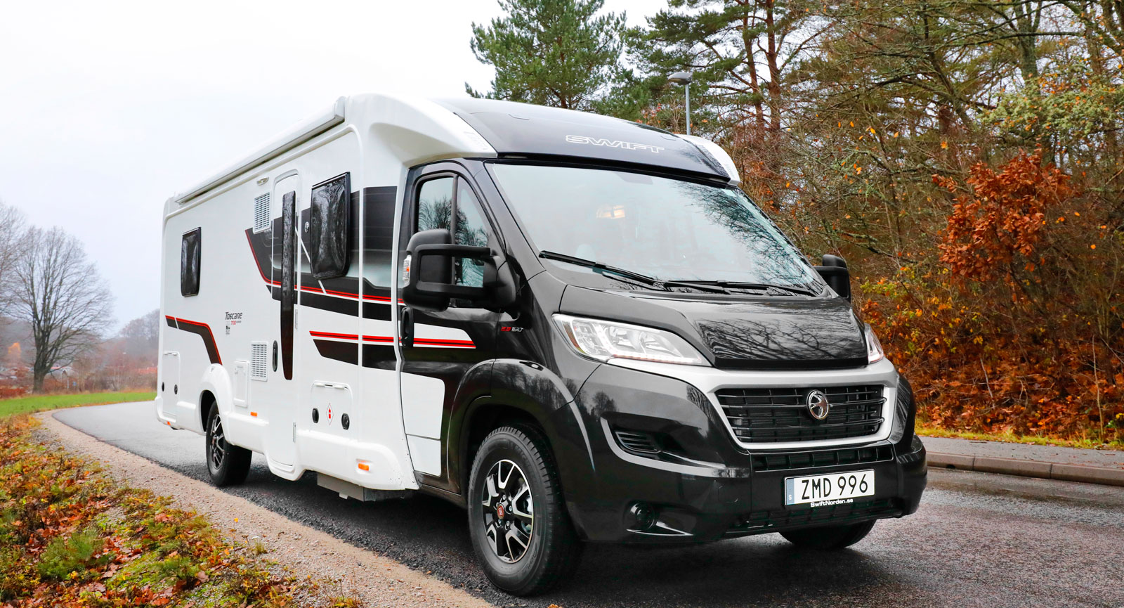 I Storbritannien byggs det många husbilar men de flesta har ratten på fel sida. Swift bygger flera vänsterstyrda varianter och denna är rymlig, pigg på vägen och riktigt skön att bo i. Prismässigt får man väldigt mycket bil för pengarna.