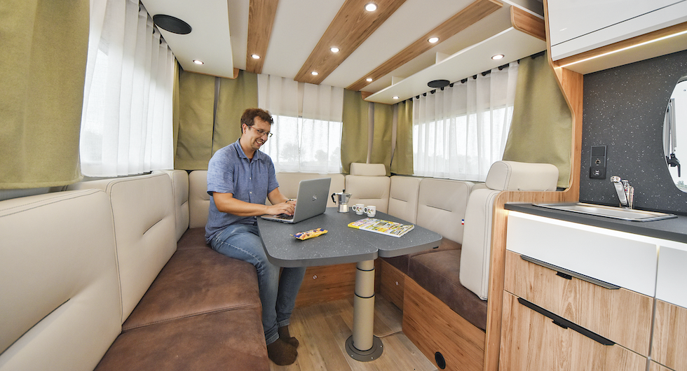 På husvagnar är det inget speciellt med u-soffa men på husbilar hör det till undantagen. Det är dock inte det enda där Pilote P 696 U går utanför mallen.