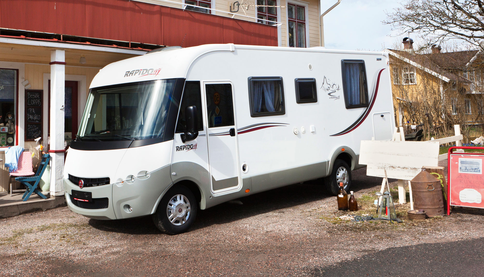 Exteriört är den väldigt lik de helintegrerade bilarna i Rapidos 9-serie. Den största skillnaden är att backspeglarna inte är bussmonterade, vilket betyder hängande uppifrån. Den här bilen har mer traditionellt placerade backspeglar. Lackeringen är övervägande vit med ett brett grått fält längst ned runt hela bilen. Väggar, tak och front har ett ytterskikt av glasfiber, vilket har god motståndskraft mot hagel. Själva isoleringen i väggar, tak och golv består av styrofoam. Dragkrok kan inte monteras på bilen. Den har nämligen ingen ramförlängning med tvärbalk längst bak vilket är det vanligaste sättet att montera dragkrok på ett Fiatchassi. Vill man ha dragkrok måste det beställas när bilen köps. Under huven är det som vanligt ganska trångt. Oljepåfyllningen sitter långt in men påfyllningen av spolarvätska är lättare att komma åt. Bilen är utrustad med Fiats 2,3 liters-motor som ger 130 hästkrafter. Den bil jag lånar av PR-Husbilar i Sollebrunn har tomma tankar och lite last. Den går som ett skott, jag undrar om det ändå inte är en större motor i bilen? Fullt lastad och med tillbehör som markis är bilen förmodligen mer normal i sitt uppträdande. Färden är helt befriad från skrammel och knirr. Bilens lastutrymme är väl tilltaget. Utrymmet går från vägg till vägg med en stor dörr på passagerarsidan och en mindre lastlucka på den andra. Som mest är det 114 centimeter brett och 102 centimeter högt. Det finns ett par öppna hyllor, på den ena är bodelsbatteriet fastspänt. Elcentral, jordfelsbrytare och säkringar är prydligt placerade bredvid, lätta att nå från lastluckan. Fasta lastöglor finns liksom belysning och värme.