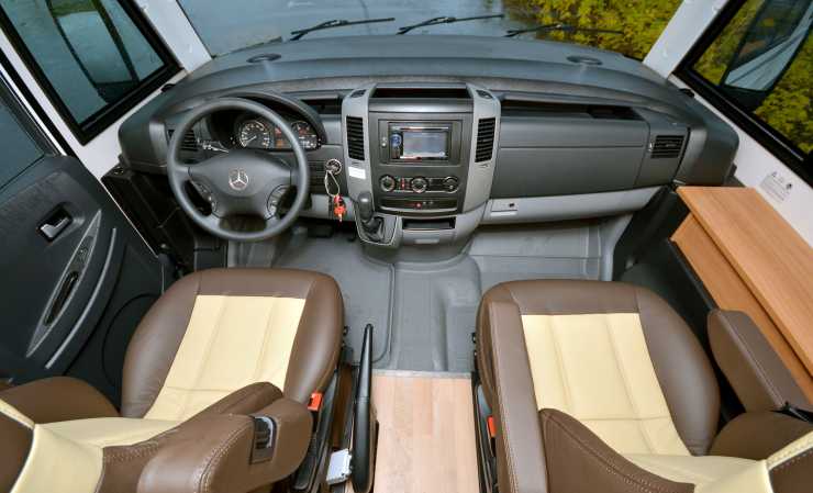 Begränsande vikter. Problemet med den integrerade 8-serien är dess vikt, åtminstone om tillvalslistan får många kryss. Basmodellen med 2,2-liters motorn kan registreras för fyra personer, men en dragkrok sänker persontalet till tre, om man stannar i 3,5-tonsklassen. Om man vill utrusta bilen med en 190-hästars V6-motor, automat och dragkrok, kan bilen endast registreras för två personer. Enklast löses detta problem genom att välja ett chassi med högre totalvikt. I detta fall maximalt 3 880 kilo, vilket är standard i Sverige. Den mindre motorn har dock tillräckligt med kraft för smidig framfart. Sprinterchassit är stabilt. 163 hästkrafter räcker för rask fart och automatväxellådan ger extra krydda i anrättningen. Skillnaden mellan denna bil jämfört med de som bygger på Fiat Ducato eller Renault Master med automatväxellåda är enorm. När dessa två bilars automatlådor funderar på nästa växel, har Mercedesväxellådan redan klarat av uppgiften. Samma gäller tvärtom när man ska sakta ner innan en korsning, speciellt om man bromsar och inte bara rullar. Mercedesen växlar ner nästintill omärkbart i jämförelse.