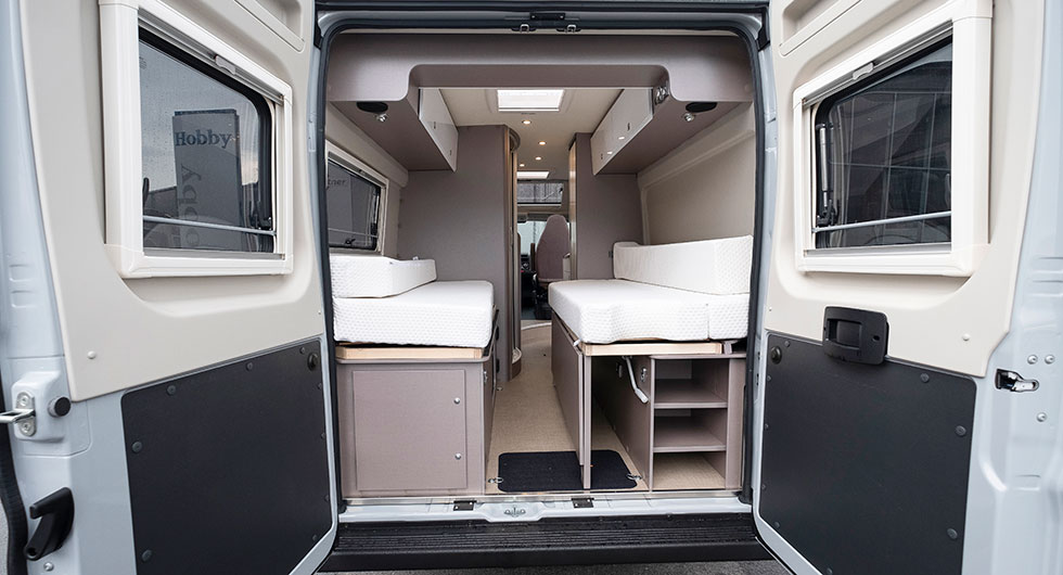 Med nya Eliseo så tar Bürstner sina plåtisar ett kliv närmare det som många kunder efterfrågar. Låga längsgående bäddar plus ett stort kylskåp på 135 liter. Lägg därtill ett omfattande belysningssystem och möjlighet till skyroof eller pop-up-tak.