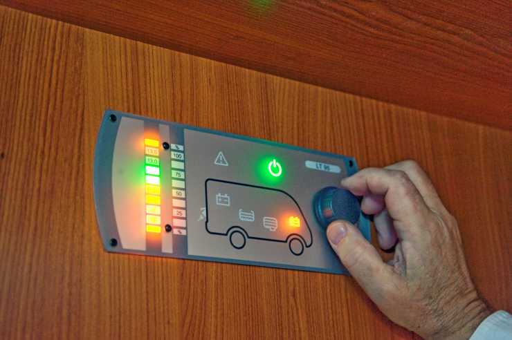 Manöverpanelen ger information om batteriernas kapacitet samt mängden färsk- och gråvatten.