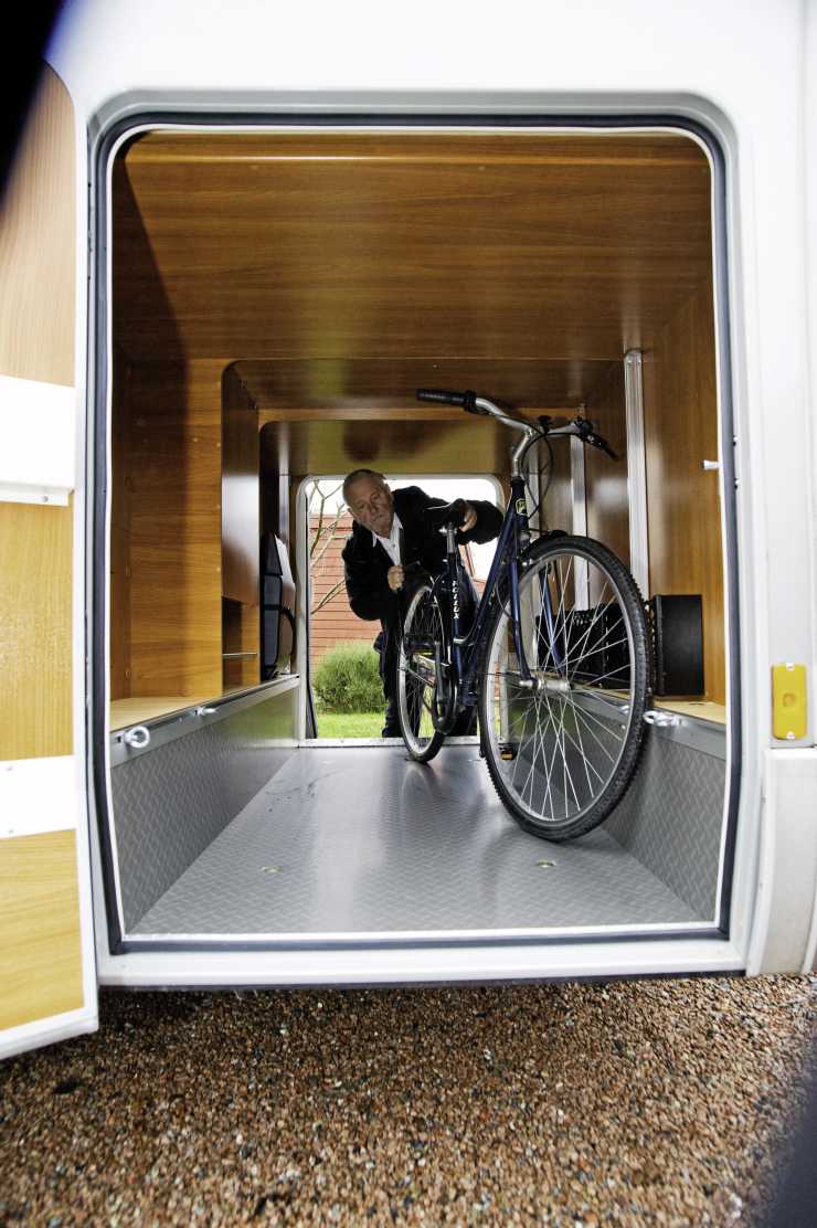 Längst bak har vi ett stort lastutrymme med måtten 2,1 x 1,18 x 0,9 meter, som ger gott om plats för både cyklar och annat viktigt. Fordonets maximala lastvikt är 380 kg vilket betyder att med tre normalvägande 75 kilos passagerare ombord kan man bara lasta ytterligare 155 kg. Hänger du sedan på en markis och ett cykelställ så har du bara 100 kg kvar. Utrymmet är försett med kraftiga flyttbara öglor att säkra lasten med.