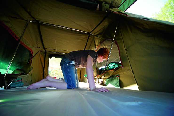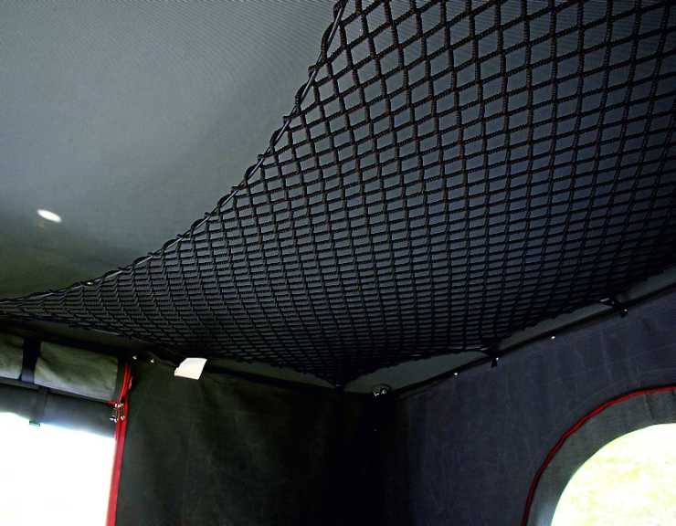 Under tak finns en 75 millimeter tjock antimögelbehandlad madrass, två till tre kuddar beroende på modell och stuvnät i taket och på sidorna. Hela tältet är antimögelbehandlat.