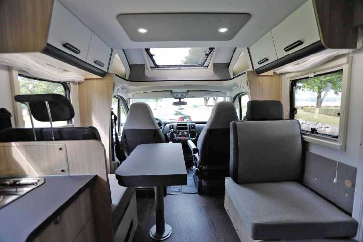 Dessutom är bagaget rymligt med åtkomst från två håll och extra hyllor. Den som behöver högre lastvikt än 577 kilo som är vad du får när totalvikten är 3500 kilo, kan väga upp den till 3650 kilo. Alternativt välja så kallat heavy chassi med en totalvikt på 4250 kilo och last vikt på drygt 1200 kilo.