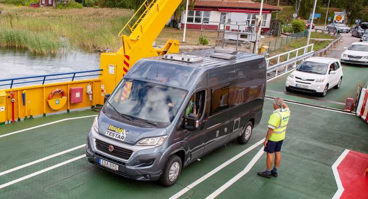 Det är inga problem att komma på eller av färjan. Överhänget bak är minimalt så inget riskerar att skrapa i marken.