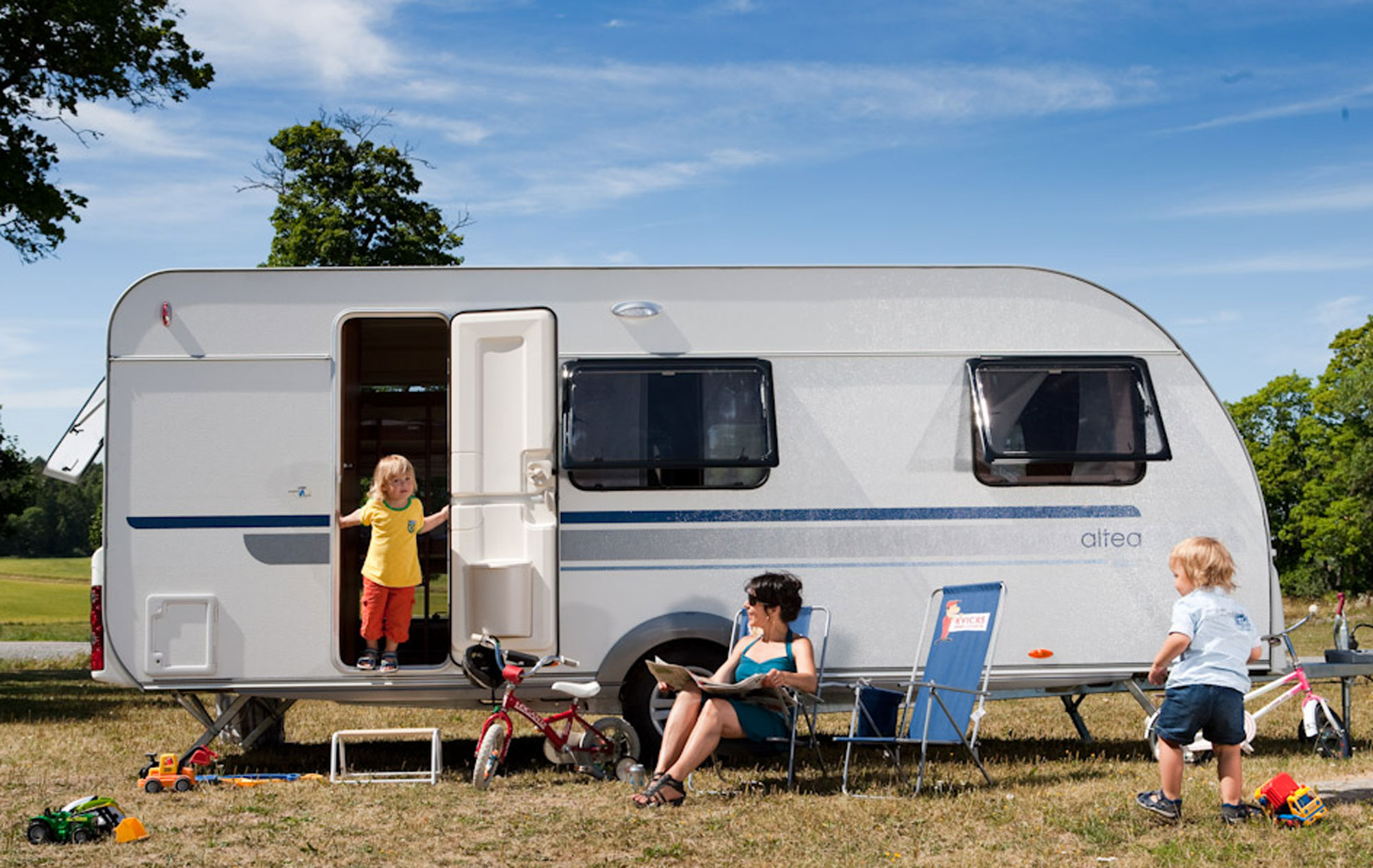 Faktum är att Altea 542 DT har en hel del att erbjuda. Vagnen är visserligen inget bjässe, den utvändiga karosslängden mäter 5 878 mm, men rymmer sex personer. Dessutom ger den ett första exklusivt intryck med snickerier i ett rosenträliknande utförande, nytt i årets modellprogram. Husbil & Husvagn testar vagnen vid flera olika tillfällen under de varma juliveckorna sommaren 2010.