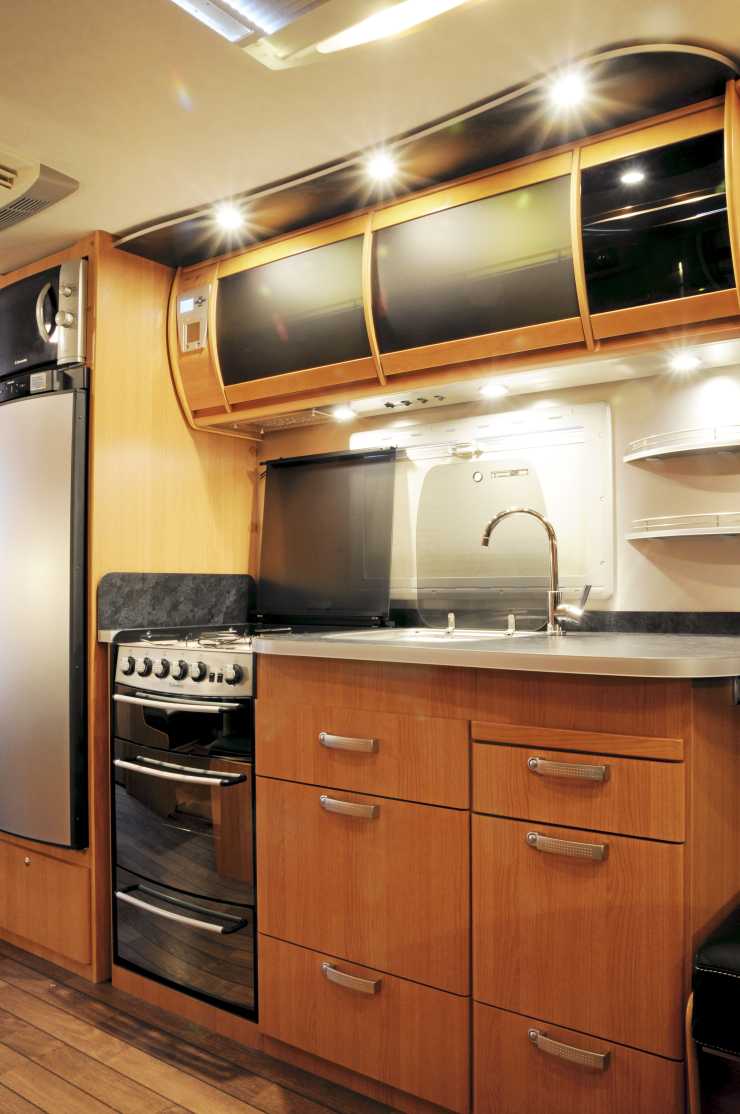 Köksavdelningen är toppen bortsett från den högt placerade mikrovågsugnen vilket gäller majoriteten fritidsfordon.