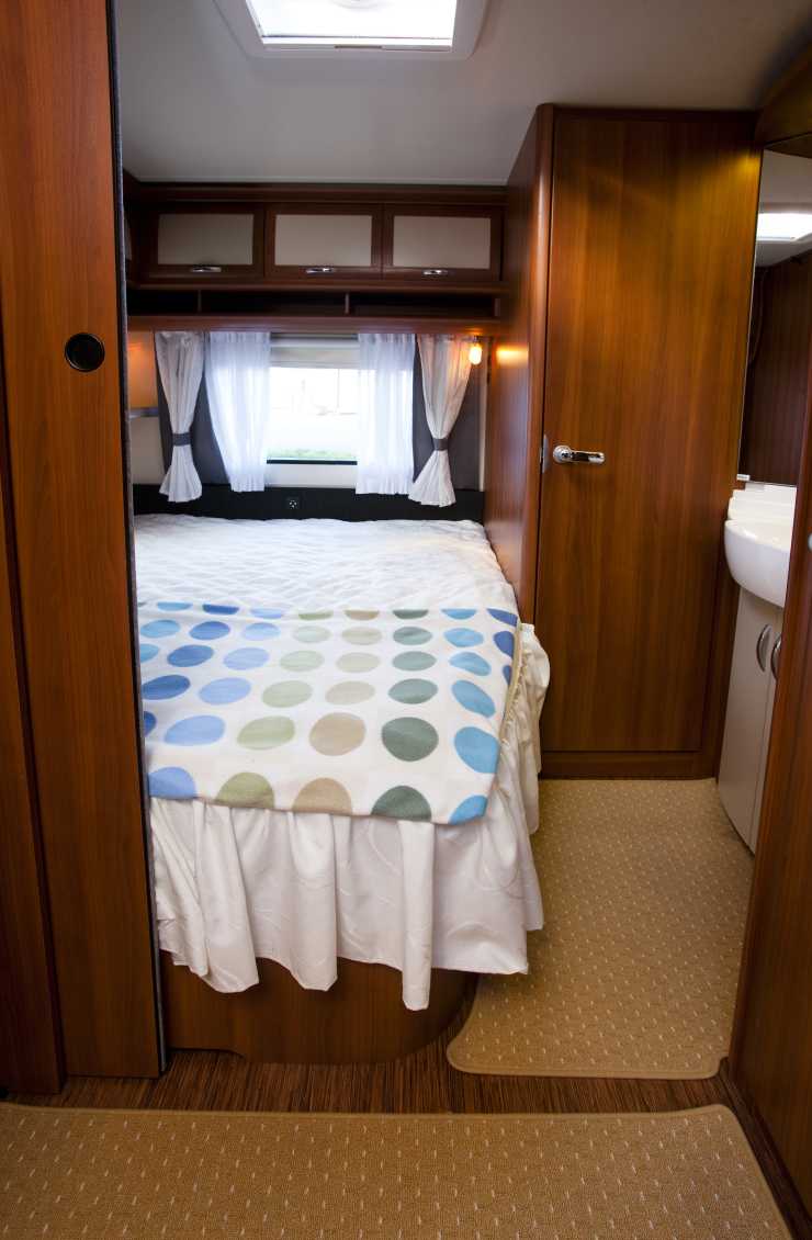 Vill man vräka sig i ensamt majestät i ytterligare en säng så bäddar man, med hjälp av extradynor, ner den främre sittgruppen och kan rumla om på den visserligen 2,14 meter långa men bara 1,38 meter breda bädden. Som även den i nödfall kan fungera som dubbelsäng för två intimt bekanta eller för ett antal barn som kan ligga där på längden eller på tvären.